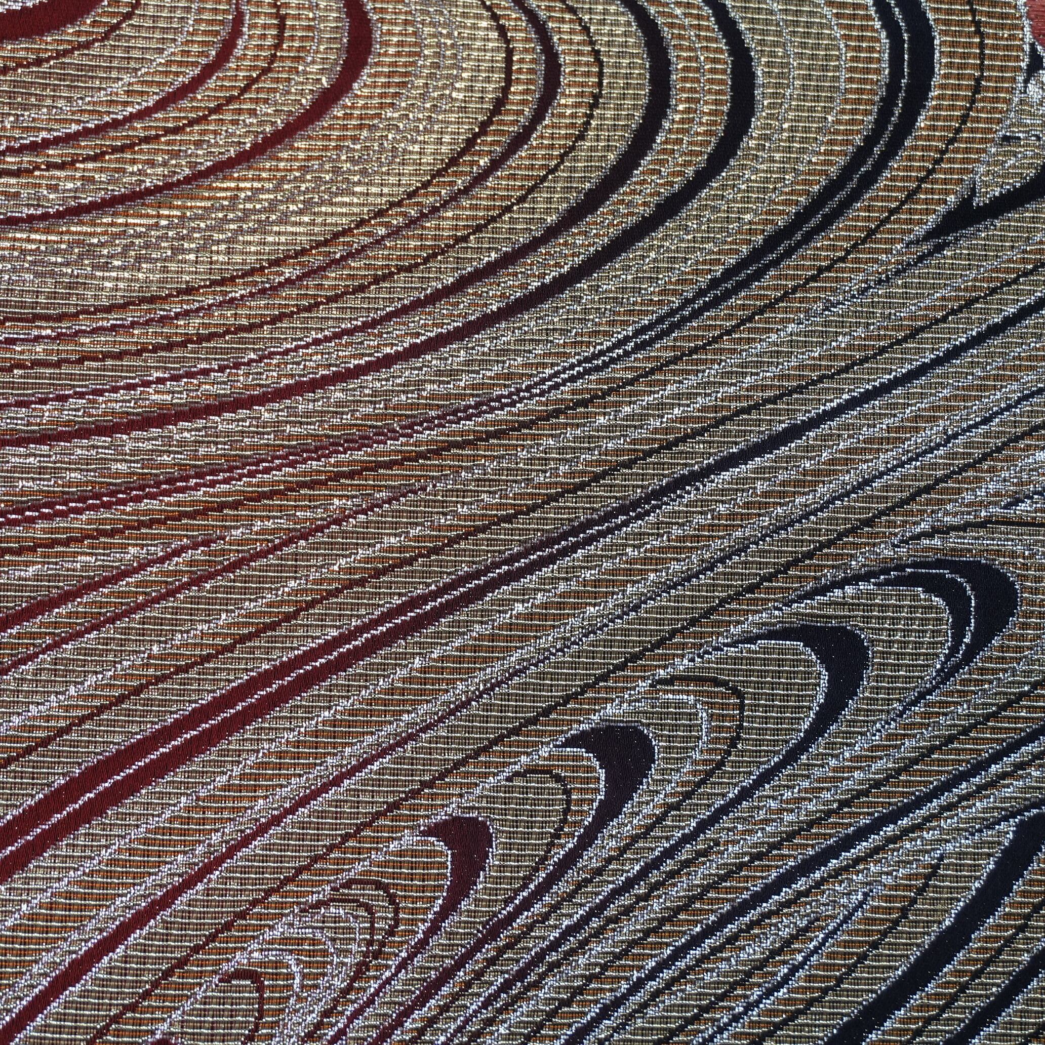 金糸と赤と黒のコントラストが鮮やかに映え、華やかさを引き立てる魅力的な帯となっています。