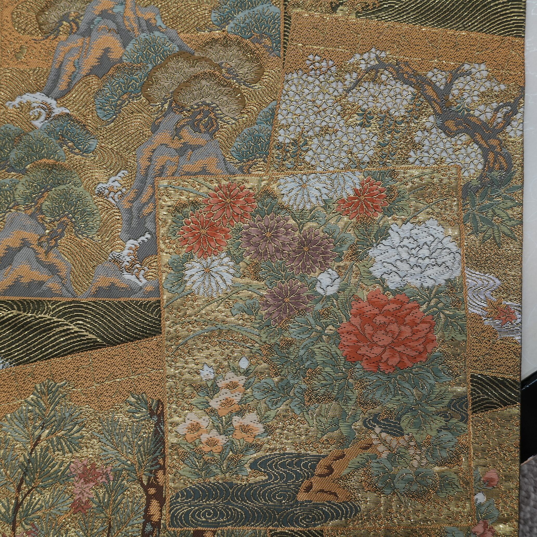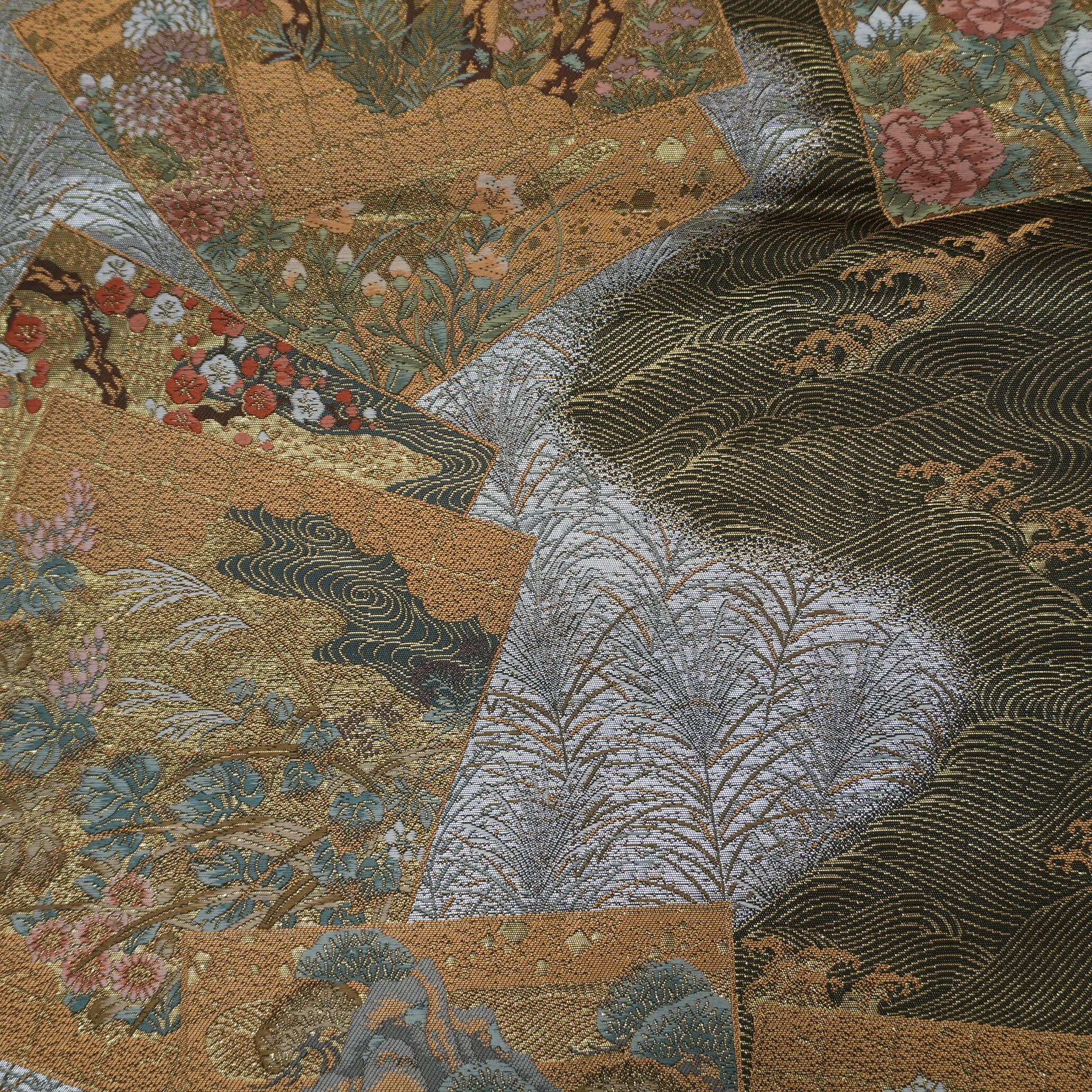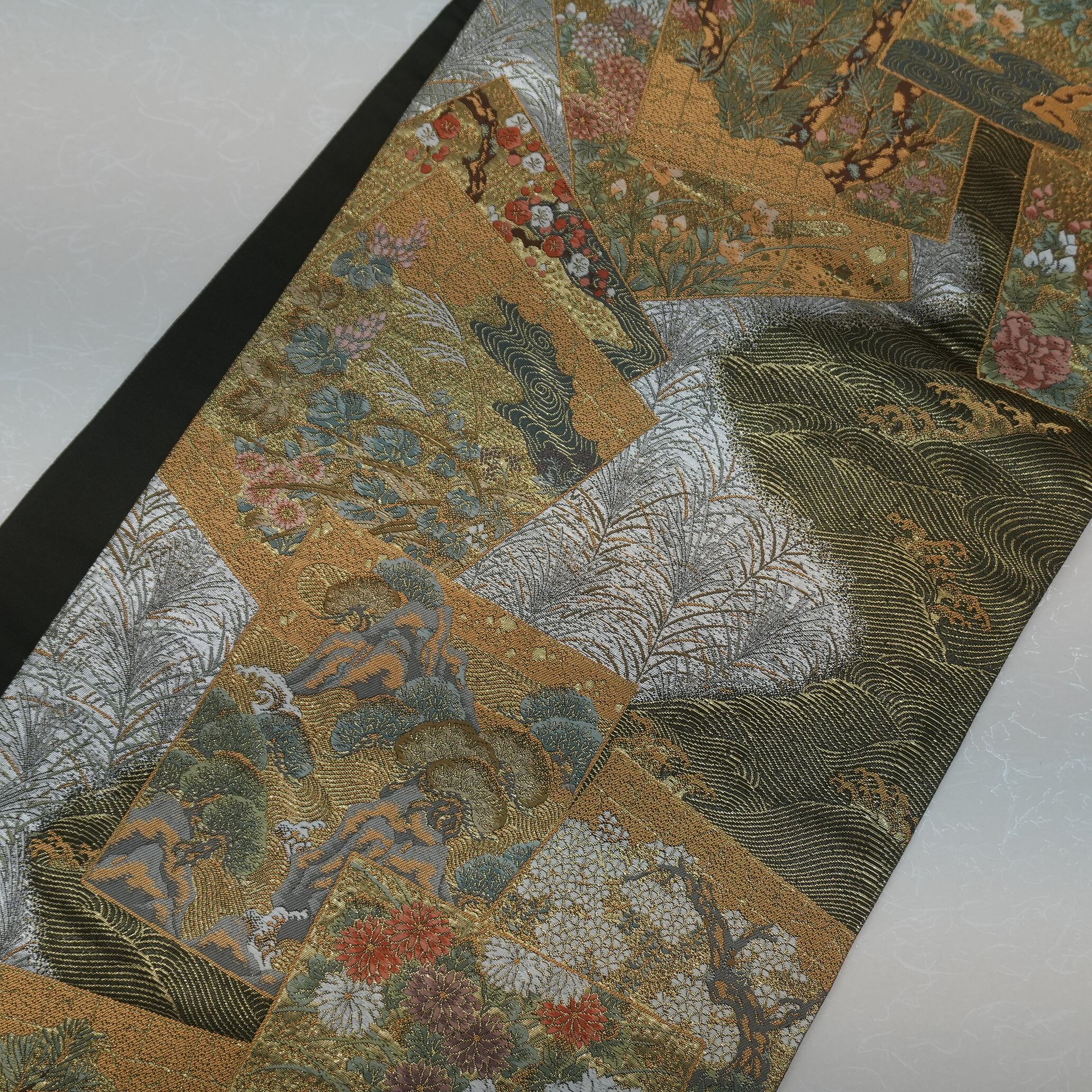 こちらの練習用お仕立て上がり袋帯は、大きな色紙が大胆に重ねられているのが特徴です。