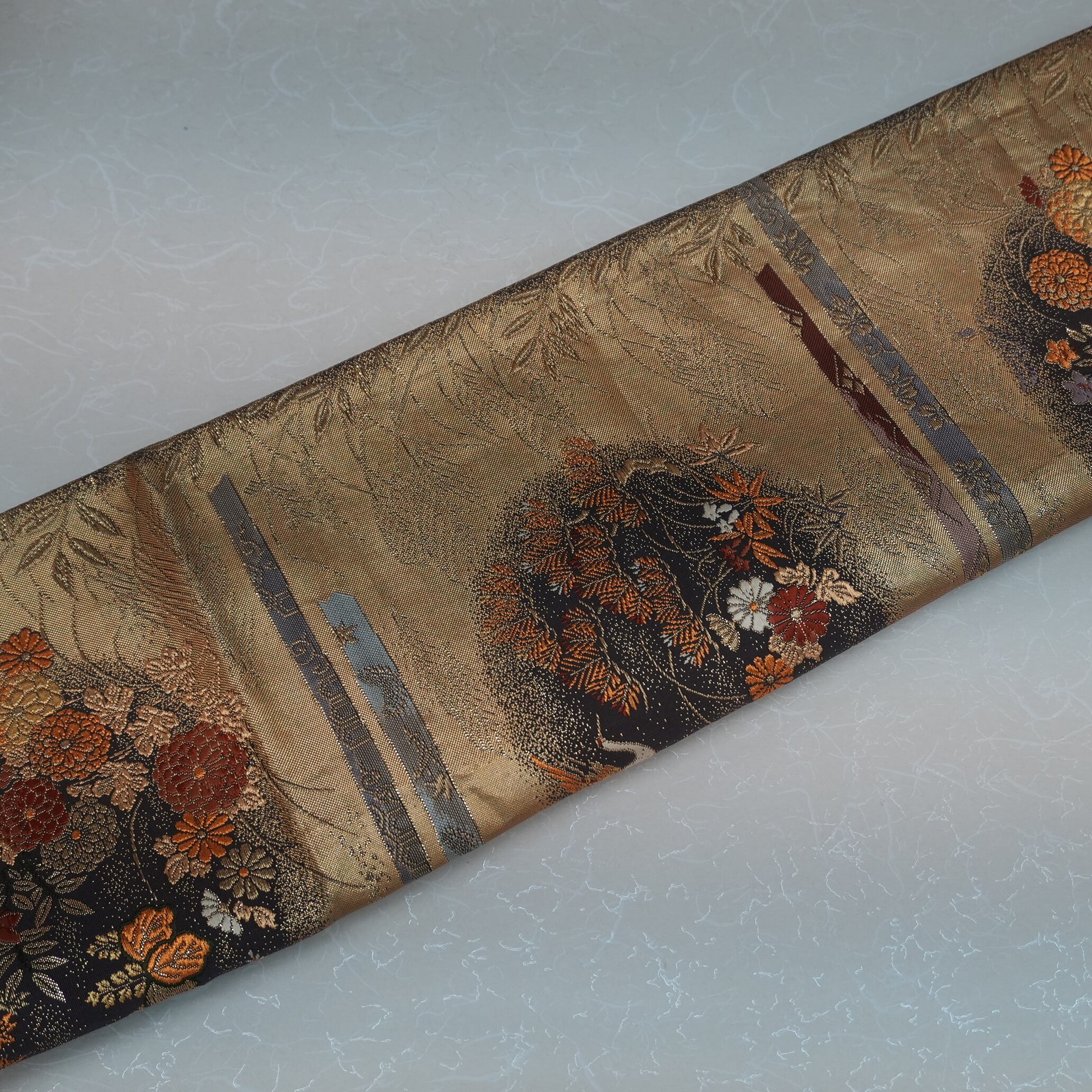 こちらの練習用お仕立て上がり袋帯は、重厚感のある引き箔地が魅力の逸品です。