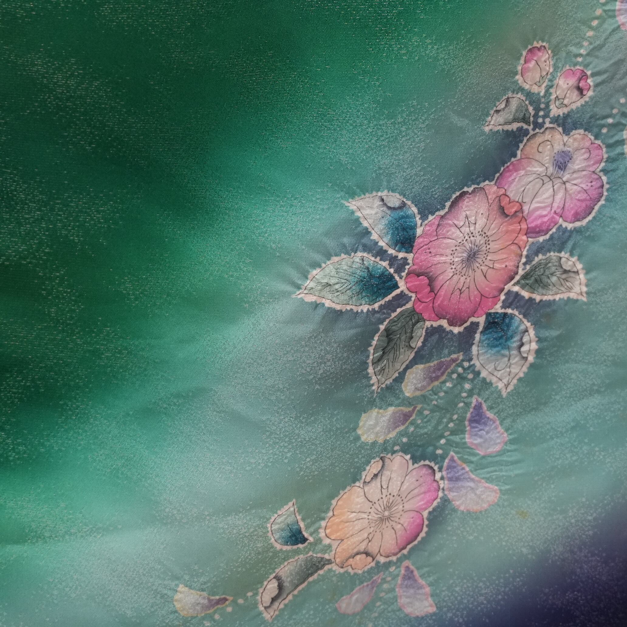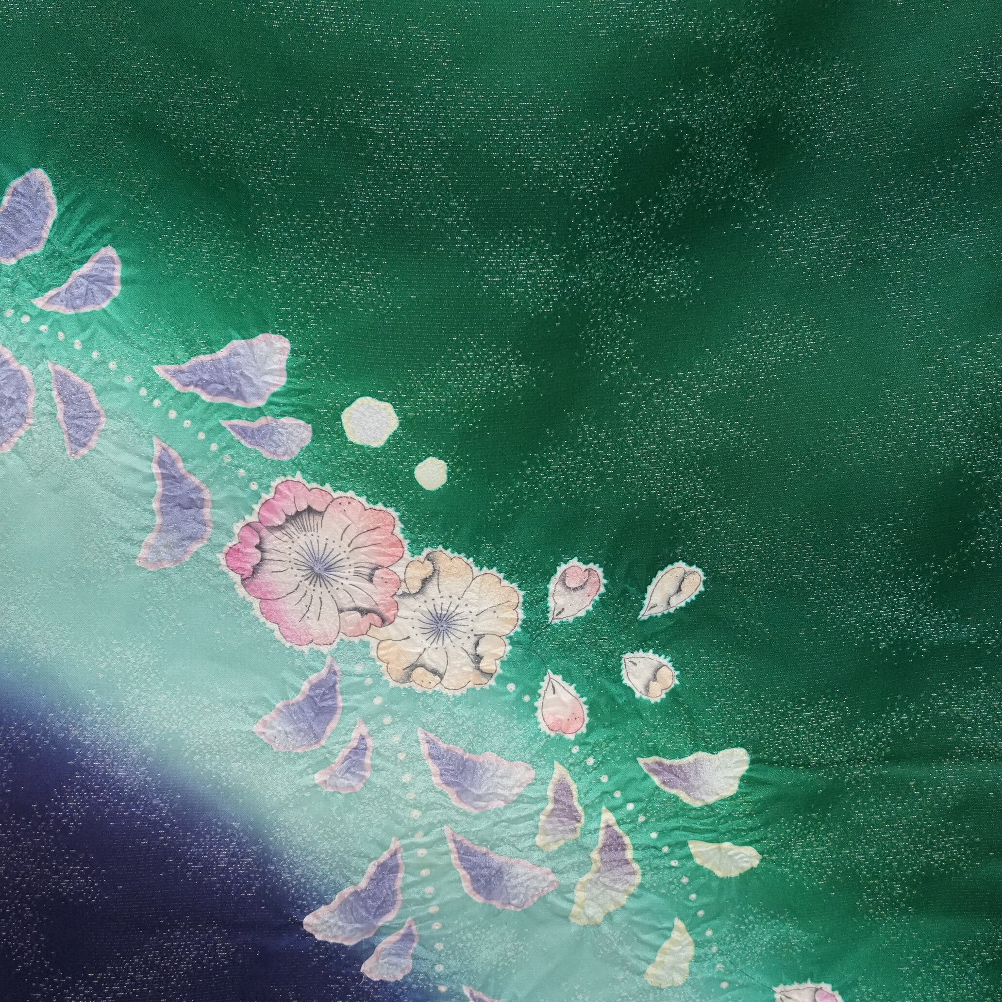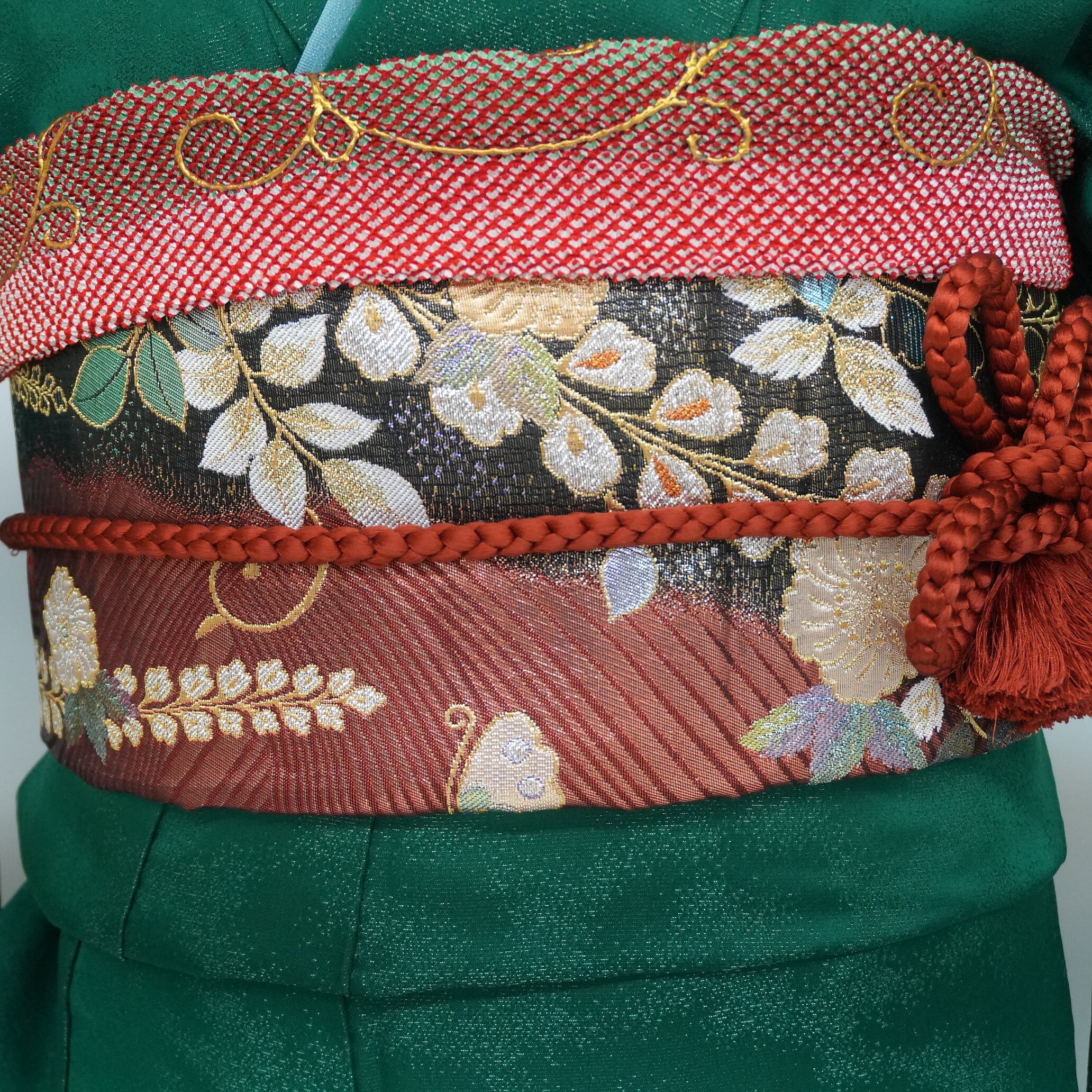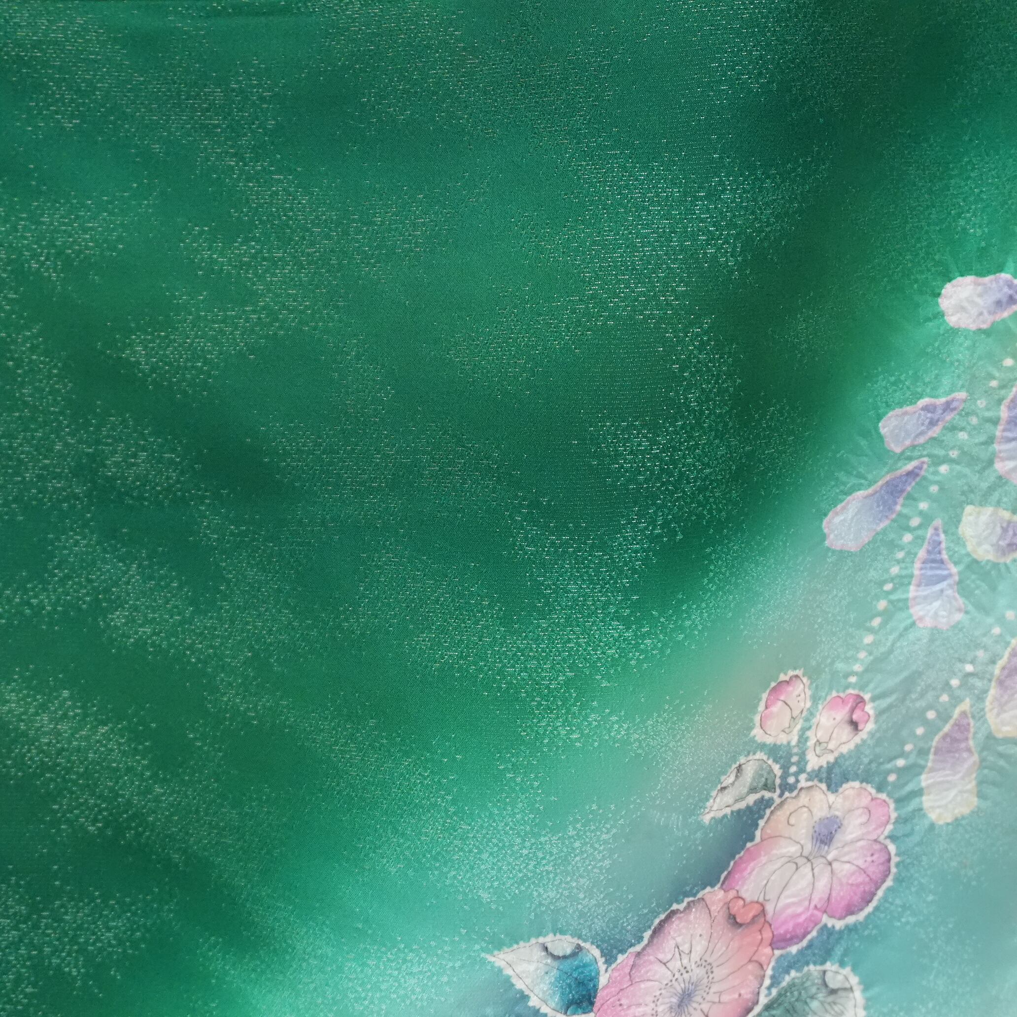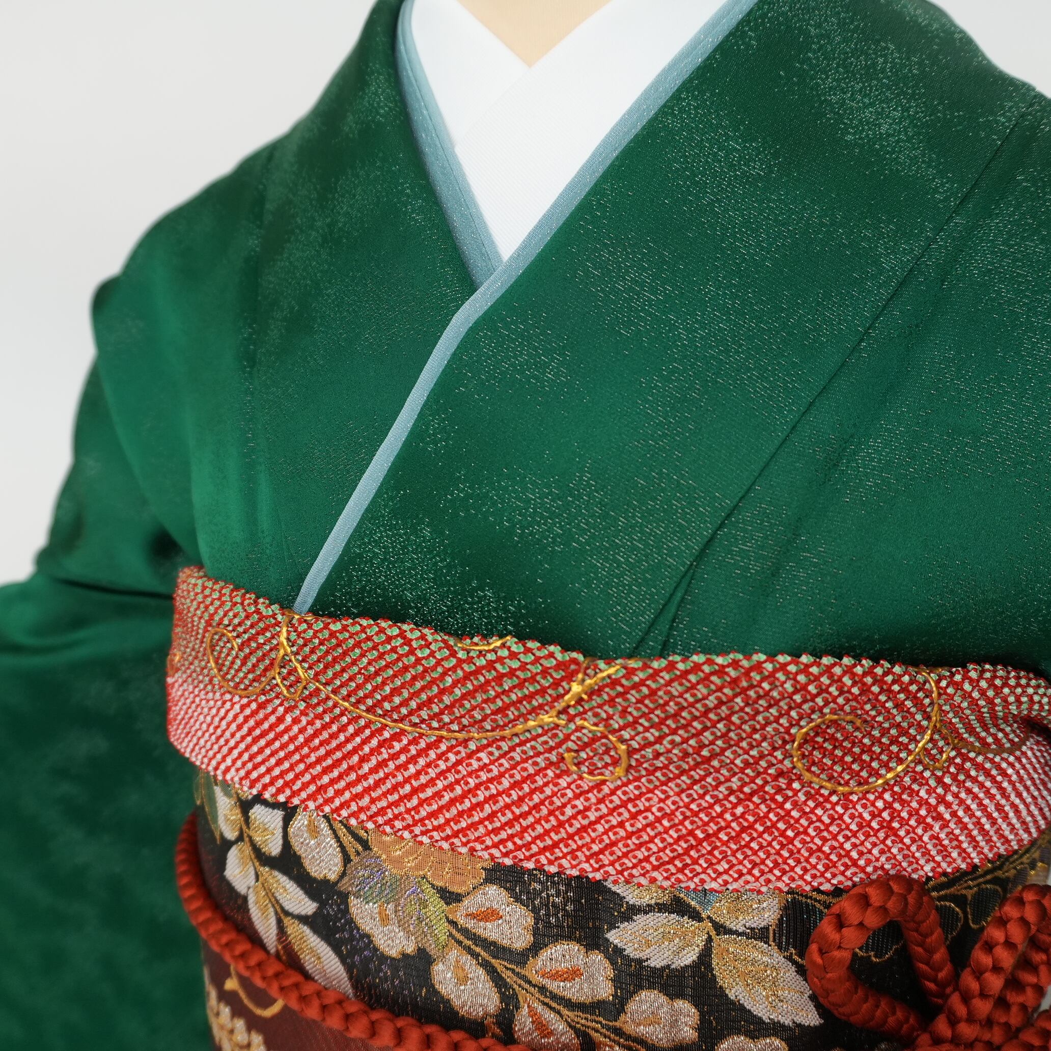 落ち着きがありつつも華やかさが感じられる緑の地色は、モダンな美しさを引き立てます。