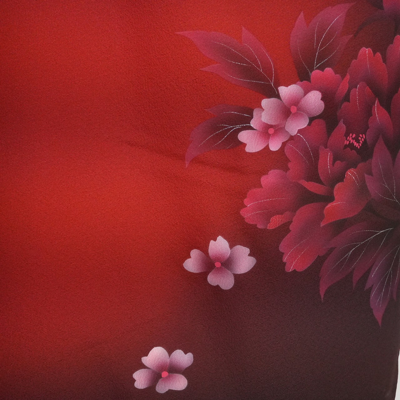 こちらの練習用振袖セットは、 落ち着いた赤い地色が特徴です。