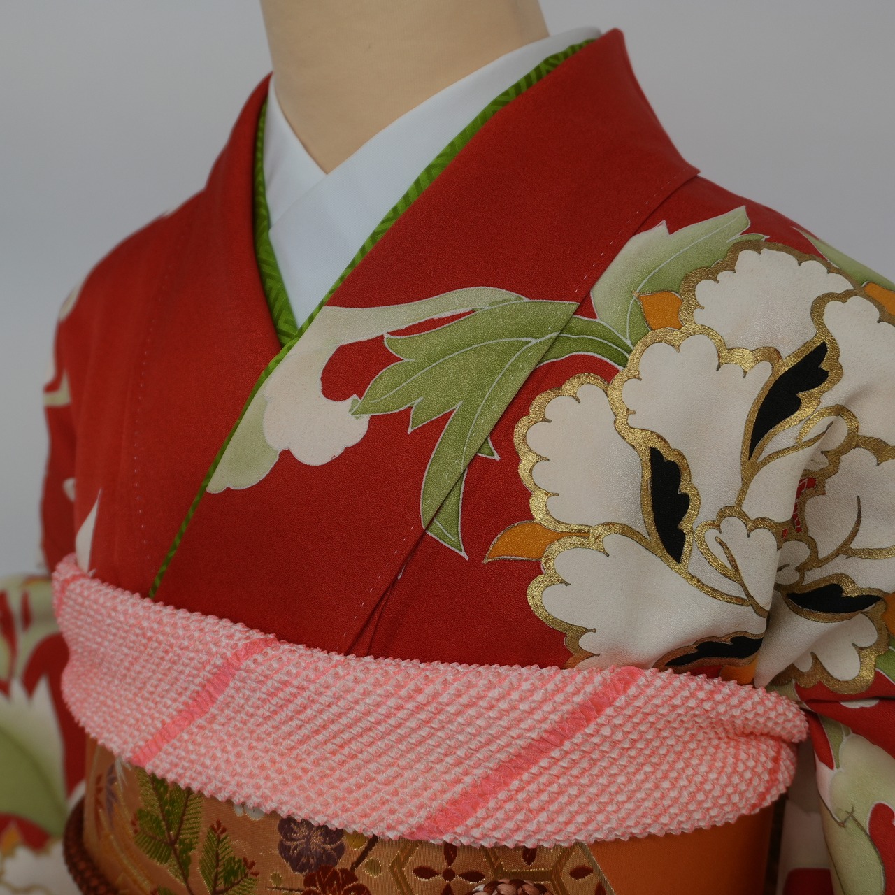 振袖セットには、帯、帯締め、帯揚げ、伊達衿もセットでお届けいたします。